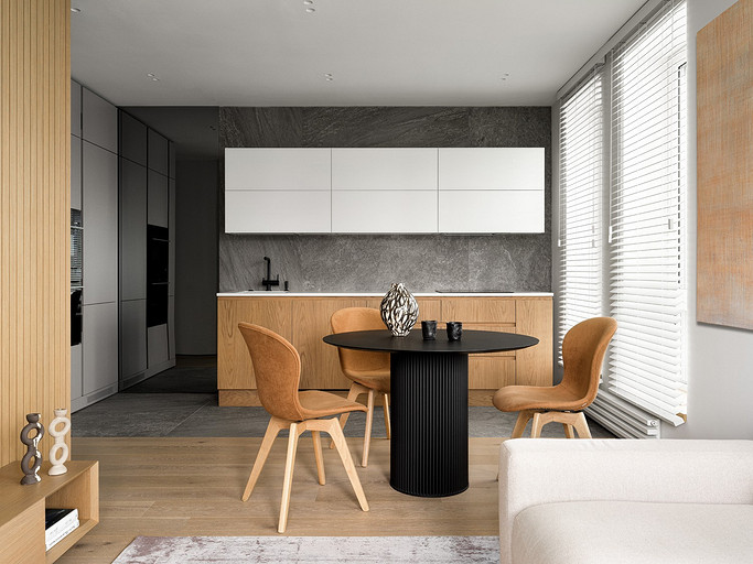 - Мебель: кухня Giulia Novars, стол Tok, стулья BoConcept, диван Olta, ТВ-тумба и панель Mobo по проекту Anga Project, журнальный столик Ferm Living