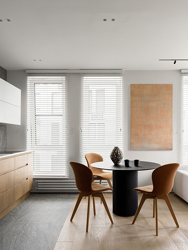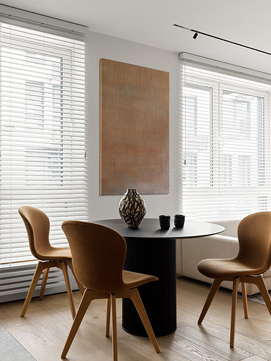 - Аксессуары и декор: ваза — Катя Феус, подсвечники — Анна Жукова, картина — Иван Новиков «Перевернутая корзина No6», солонка и перечница Normann Copenhagen