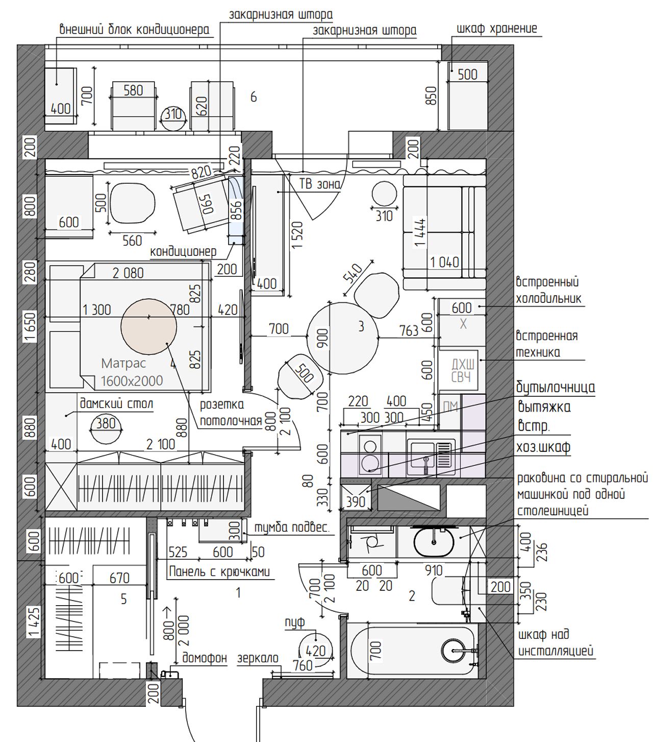 Заказчик: девушка. Бюджет на мебель и материалы: 3,5 млн. рублей. Сроки на проект: 40 рабочих дней. Задачи: планирования пространства, распределение зон хранения.