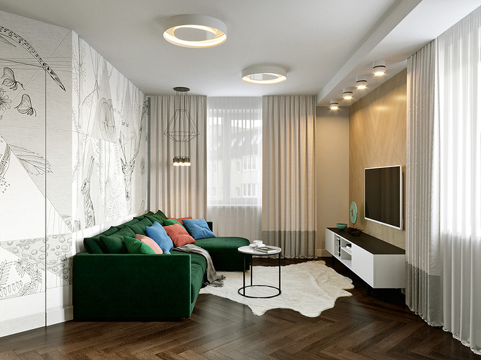 Дизайн-проект двухкомнатной квартиры общей площадью 53,5 м²