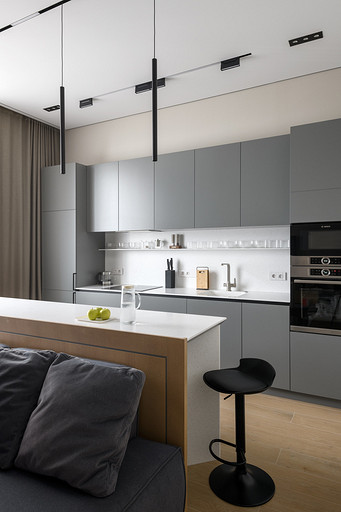 Данная квартира не является постоянным местом жительства, а скорее местом для отдыха выходного дня. В будние дни, на период учебы, пользователем квартиры является сын-подросток,. Концепция интерьера «Первая линия» родилась после первого посещения объекта. Данный ЖК расположен на первой линии Новосибрской набережной в ЖК «Михайловский».