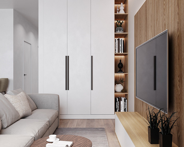 Заказчик: семья с 2-мя детьми Площадь: 92 м2 Бюджет на мебель и материалы: 6,5 млн. рублей Стоимость проекта: 240 тыс. рублей Сроки на проект 40 рабочих дней Задачи: — Планирования пространства+перепланировка — Распределение зон хранения — Организовать гардеробную комнату