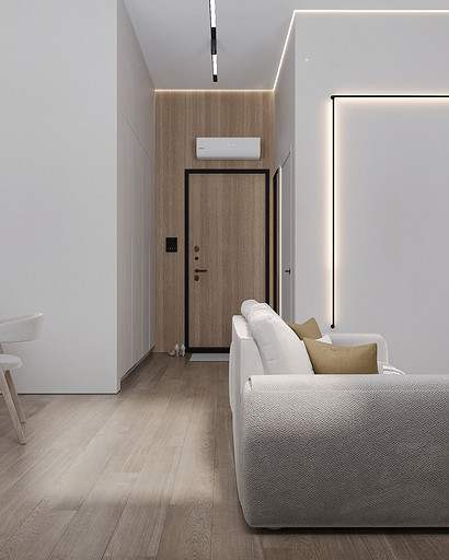 Заказчик: семья Площадь: 47 м2 Бюджет на мебель и материалы: 6,5 млн. рублей Стоимость проекта: 160 тыс. рублей Сроки на проект 40 рабочих дней Задачи: — Планирования пространства — Распределение зон хранения — Организовать ванные комнаты с прачечной