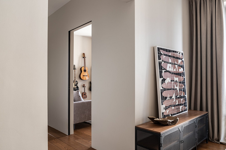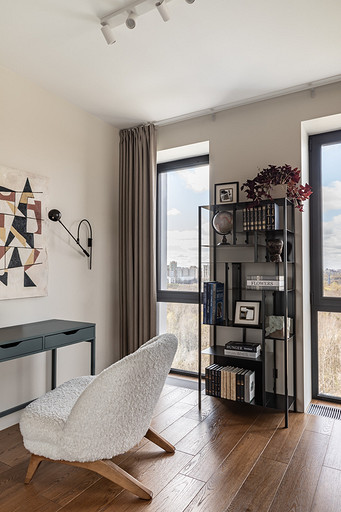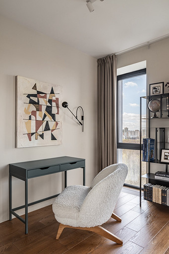 - Мебель: в санузлах сделана на заказ в мастерской Stolyarka ONE, шкафы в комнатах сделаны на заказ в mebelzakazmo.ru, кухня «Кухонный двор», кресло в спальне divan.ru, диван в гостиной Divanloft, диван в кабинете SK Design, рабочий стол в спальне и тумба в гостиной ИКЕА, стеллаж в спальне сделан на заказ в «Остов», кровать «Анатомия сна», прикроватные тумбочки Kartell, полки над диваном La Redoute, полка в душе Tezza