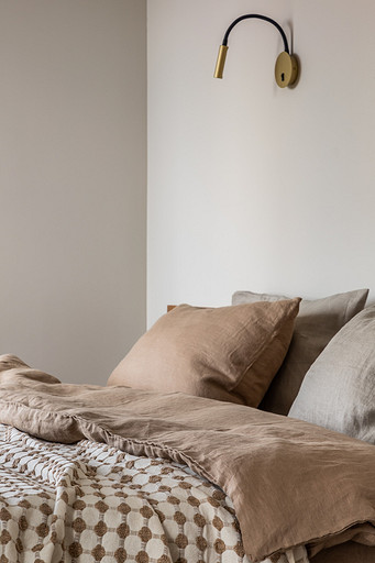 - Текстиль: постельное белье Linen Texture, пледы и декоративные подушки Alberta Decor