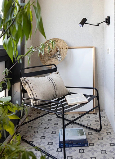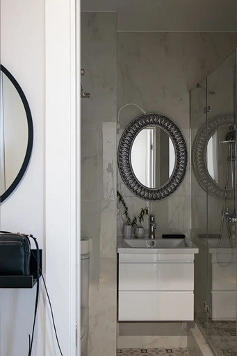 - Мебель: диван, тумба под ТВ Divan.ru, кровать, тумба в ванной, стол Ozon, стулья Leroy Merlin, кухня и шкафы на заказ, кресло на балконе H&M