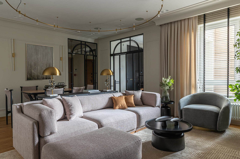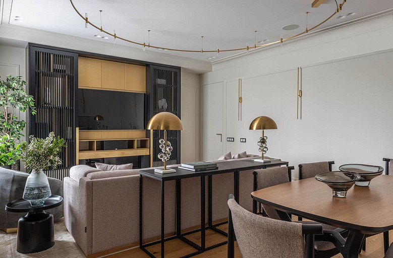 Пожелания клиента: «Квартира для отдыха, большая часть времени в других местах. Среднее между современным и классикой (не хай-тек, минимализм и не ампир).» Основная проблема: Дорога от дома до работы забирает около 15 часов в неделю. Квартира значительно ближе к офису, но заниматься интерьером в ней нет времени (даже на периодический контроль)