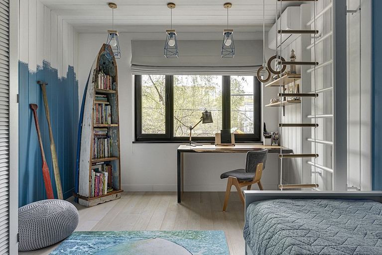 - Стены: краска Benjamin Moore, планкен Garantwood
