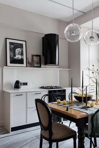 Квартира расположена в доме 1910 года с историей — здесь расположен музей-квартира Аллилуевых. Около года в этой квартире жил Иосиф Сталин. В 1917 году в конспиративном убежище в этом доме бывал Владимир Ленин, о чем свидетельствует памятная табличка на фасаде. Первоначально ко мне обратился флиппер Дмитрий Купина, который приобрел квартиру как доходную недвижимостью и поставил задачу сделать нейтральный, универсальный интерьер для продажи, некую базу для дальнейшего наполнения. После продажи ко мне обратилась новая владелица с пожеланием создать индивидуальный интерьер для жизни семьи — супружеской пары с ребенком. Интерьер нужно было наполнить духом города, добавить классических элементов, наполнить мебелью и декором, чтобы пространство заиграло красками и стало в полном смысле любимым ДОМОМ для заказчиков. Благодаря перепланировке удалось избежать длинного узкого коридора. Часть коридора присоединена к ванным комнатам, часть — к пространству гостиной, отдельно выделили входную зону. В квартире удалось сделать полноценные две ванные комнаты: с душевой зоной и ванной. В спальнях организованы полноценные гардеробные. Пространство спроектировано для комфортной жизни семьи.