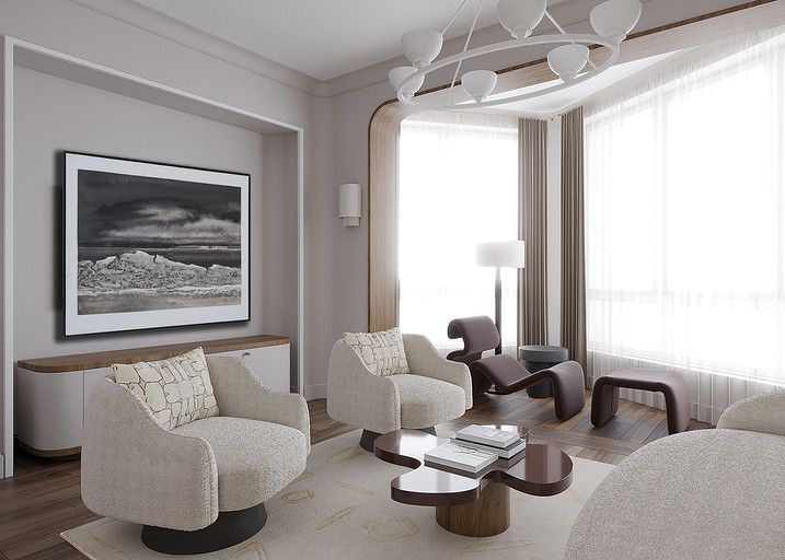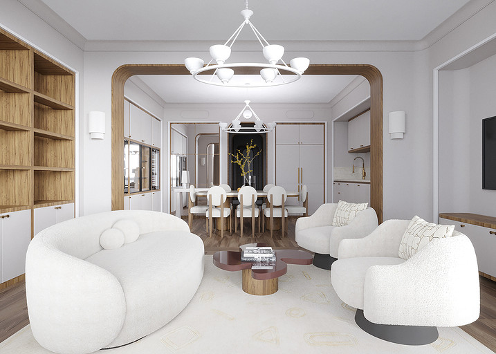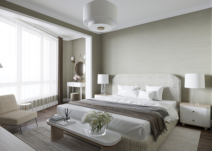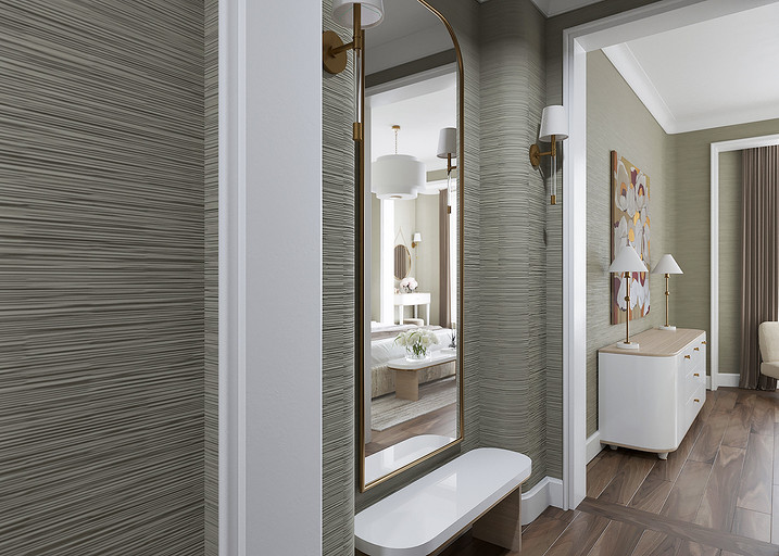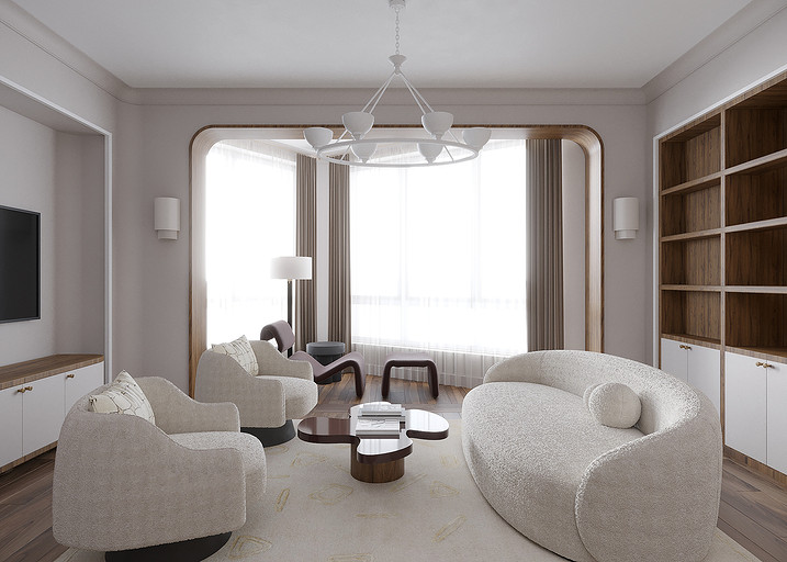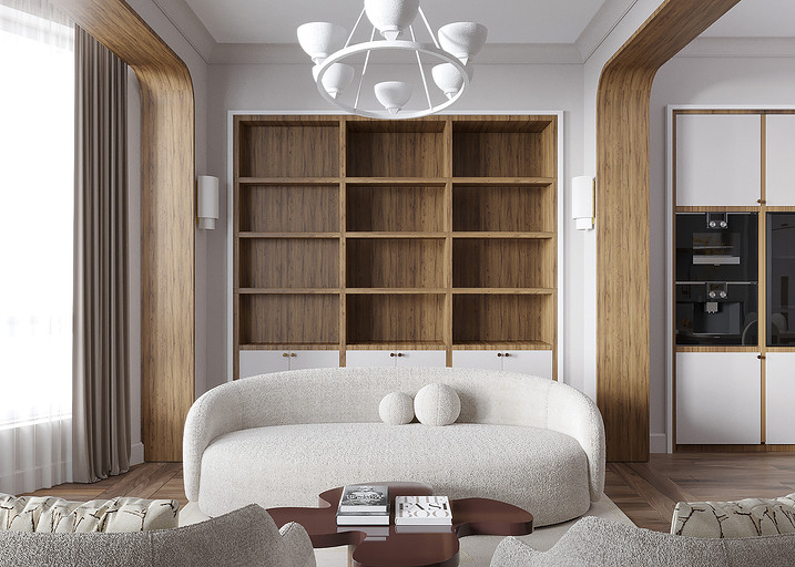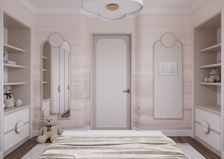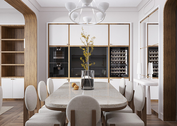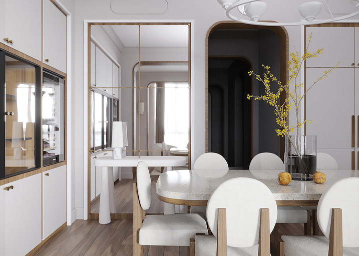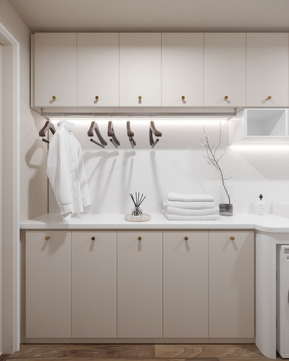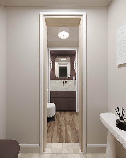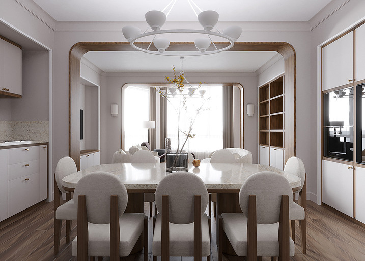 Квартира для семьи из четырех человек в ЖК Аэробус (Москва). Над внутренней архитектурой пришлось поработать, чтобы выровнять и гармонизировать пространство. В итоге на довольно большой площади удалось максимально эстетично и комфортно разместить все необходимое — две отдельные детские комнаты, мастер блок, светлую гостиную с зоной отдыха, кухню-столовую и очень удачно расположенную проходную хозяйственную комнату. Приватная и общественная зоны разнесены, также как и детская и взрослая зоны. Нестандартное, но очень удобное решение — открытый умывальник — поскольку ванная комната детского блока выполняет функцию гостевого санузла, то зону с раковиной я вынесла в открытое пространство, чтобы гости не проходили вглубь ванной комнаты к приватным детским раковинам.