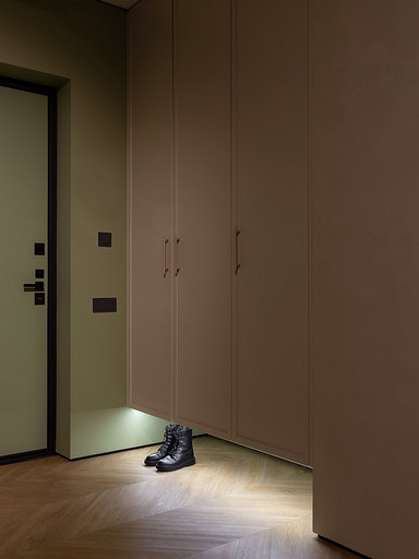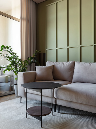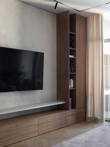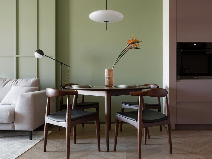 - Мебель: кухня и корпусная мебель «Столетти», мебель в спальне The Idea, мягкая мебель Osphan (на заказ), обеденный стол SK Design, обеденные стулья iModern, остальные стулья DeepHouse, журнальный столик Tok, комод и столик на балконе Lulu Space