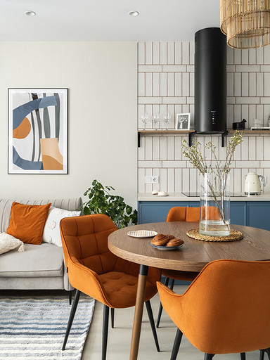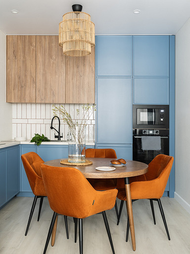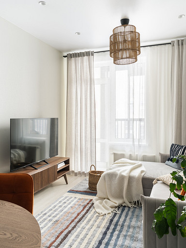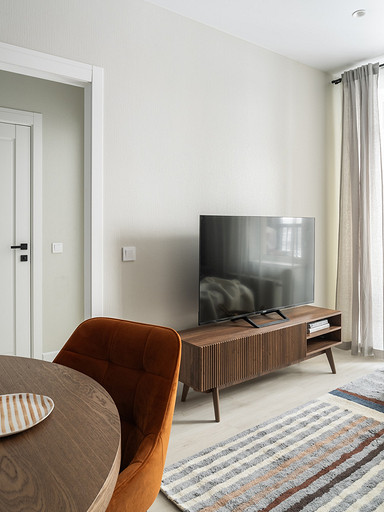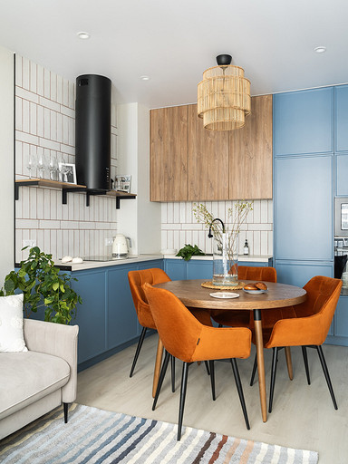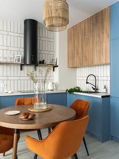 - Мебель: диван divan.ru, «Стул Стулыч», кухонный гарнитур — Ленинградский мебельный завод, стол Napilili, тумба под ТВ Puzzle Mebel