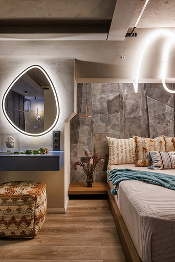 Квартиру непростой архитектуры, с огромной антресолью и множеством несущих балок, дизайнер предложила оформить в стиле лофт. Это помогло сохранить атмосферу здания бывшей типографии, превращенного в жилой корпус. Визуально легкая лестница и оригинальные элементы декора привнесли в интерьер яркие акценты и некоторую эклектичность. Читать далее...
