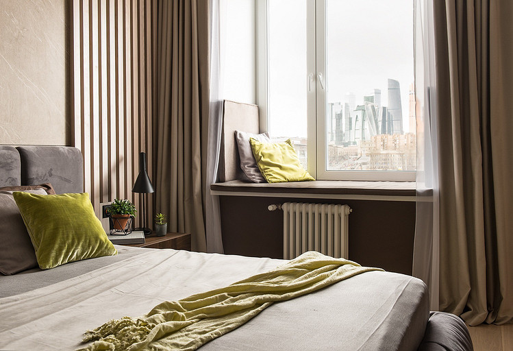 - Мебель: кровать на заказ, столик прикроватный Rossetto armobil, подоконник-лавка Staron, «Ориан», комод «Креативный Взгляд»