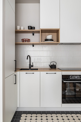 - Пол: кварцпаркет Quartz Parquet, плитка на кухне Top Cer