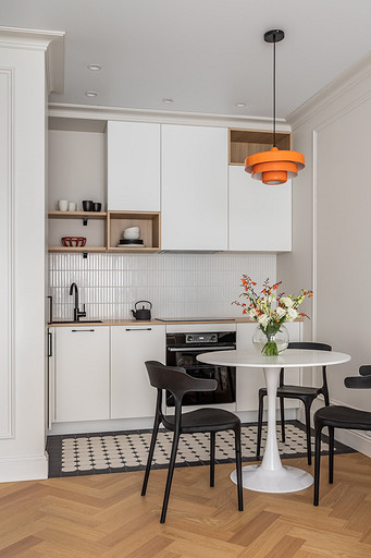- Мебель: кухня «Cтильные кухни», диван, обеденный стол и кресло divan.ru, тумба под ТВ и журнальный столик Lulu Space