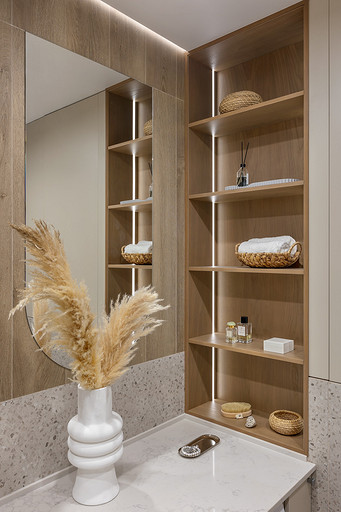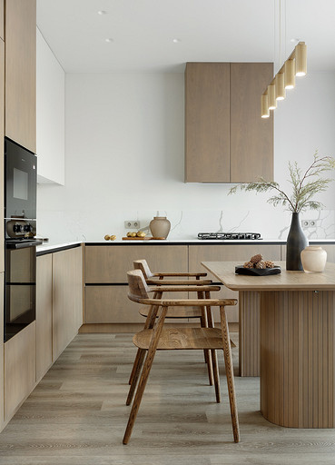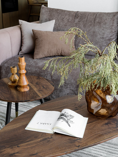 - Мебель: диван в гостиной на втором этаже Solis — на заказ у мастера, журнальные столики у диванов на первом и втором этаже Alt Home, шкафы, кухня, обеденный стол, тумбы, комоды и вся мебель в санузлах — на заказ, обеденные стулья на кухне DeepHouse, диван в гостиной на первом этаже Moon
