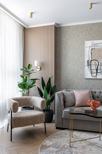 - Стены: обои Loymina Milassa, рельефные панели Bello Deco
