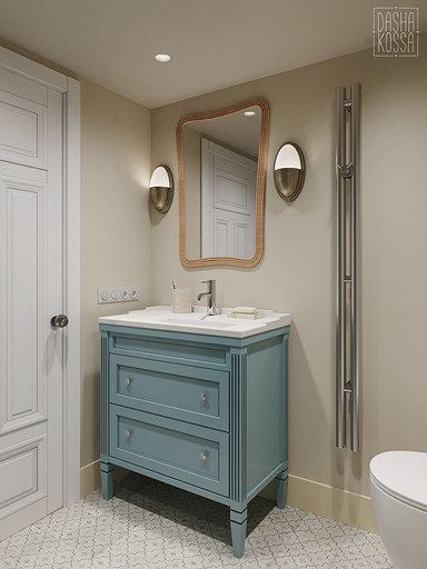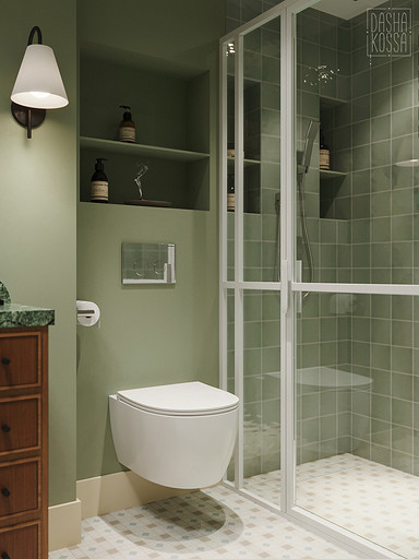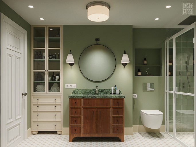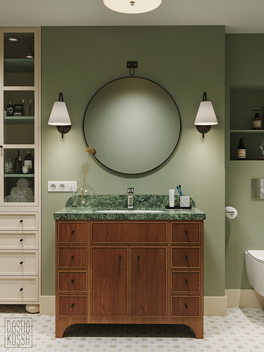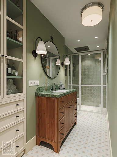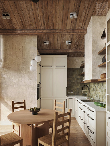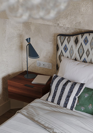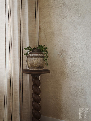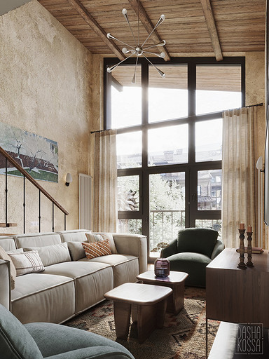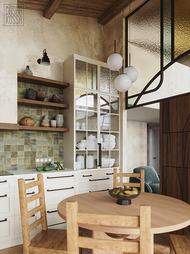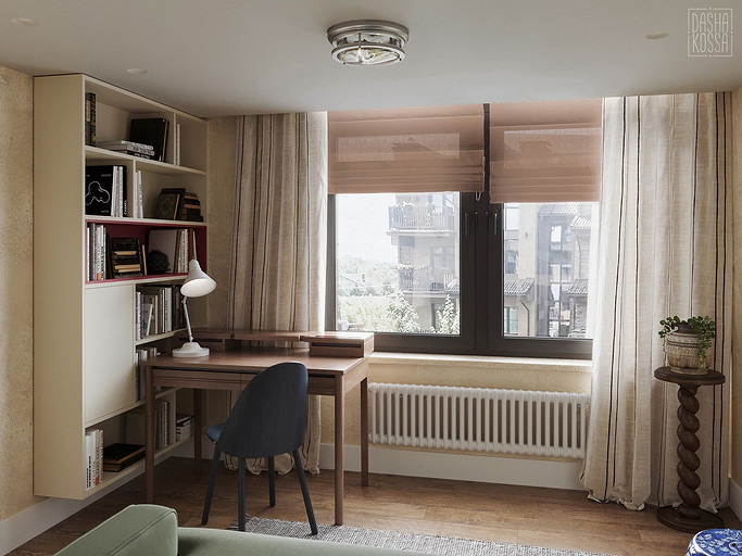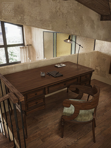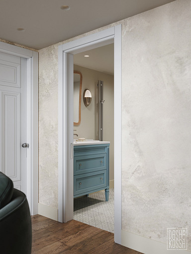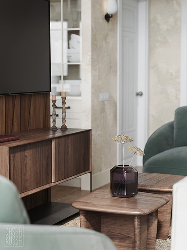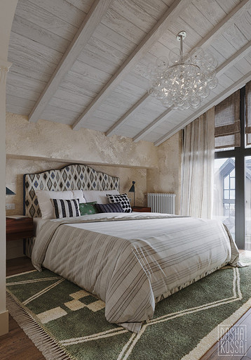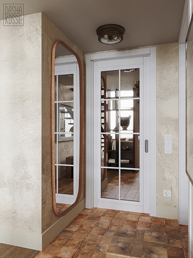 Данная квартира расположена в закрытом ЖК на Западе Москвы. В исходных данных квартира была на последнем этаже малоэтажного дома в стиле шале. Идейное содержание проекта предусматривает создание дополнительного уровня, 2 этажа внутри самой квартиры и разделение этажей на зоны: общественную, и организацию в ней перетекающих друг в друга помещений общего пользования на первом этаже: прихожая, гостиная, кухня со столовой группой в центре, гостевая комната со своей гардеробной и ванной комнаты, и зону приватную на втором этаже, состоящую из открытого кабинета на балконе, спальни, гардеробной комнаты и просторной ванной. Эстетическое наполнение строится на стремлении заказчиков к простоте, натуральности деревянных поверхностей и других текстур и материалов, ощущении открытого пространства и воздуха в нем.