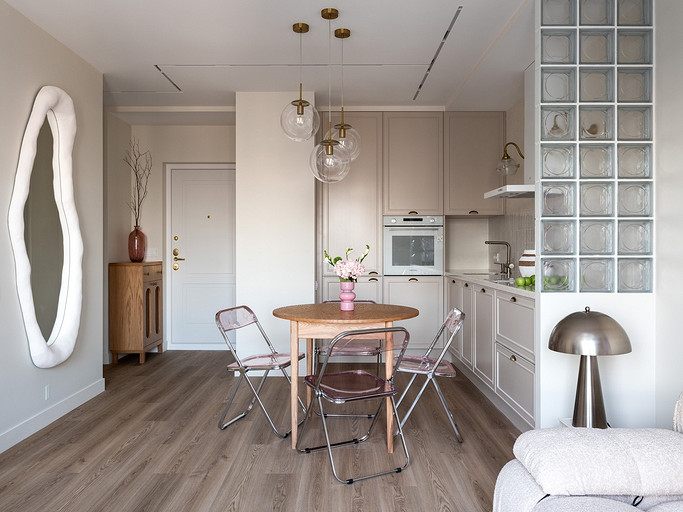 В этой небольшой квартире есть ощущение свободного пространства. Отчасти это обусловлено видом на город с высоты птичьего полета — квартира находится на 24-м этаже. Но в не меньшей степени это и заслуга дизайнера. Читать далее...