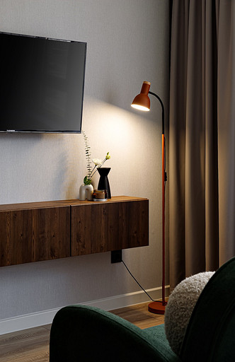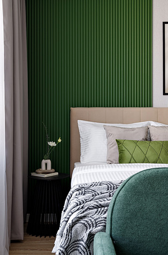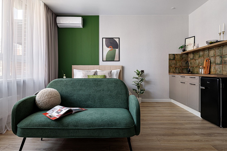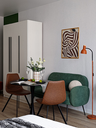 Дизайнер добавила яркие акценты и разместила необходимую мебель. Читать далее...