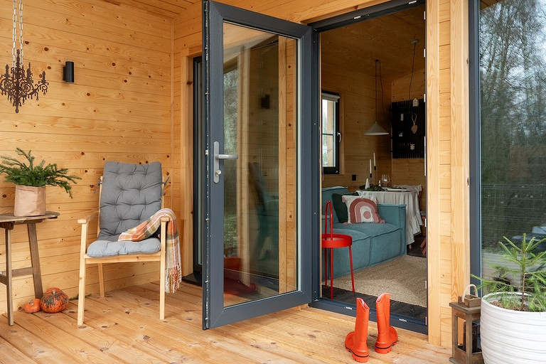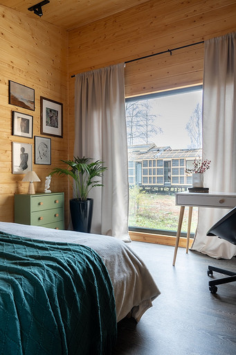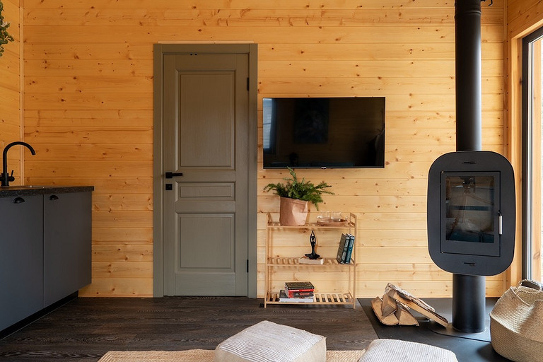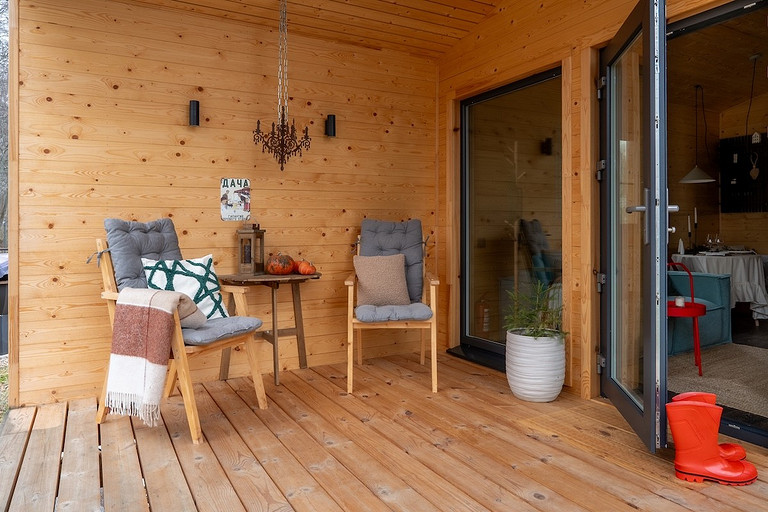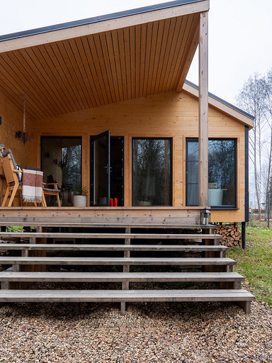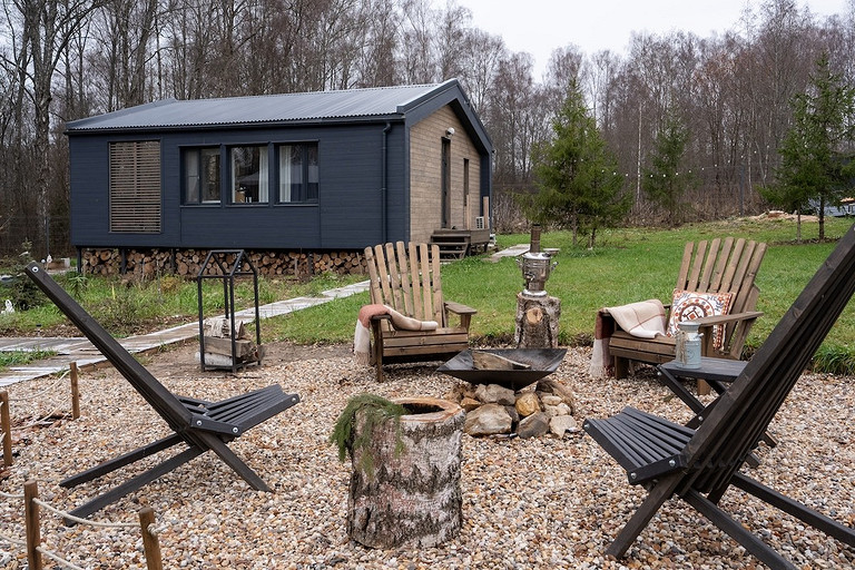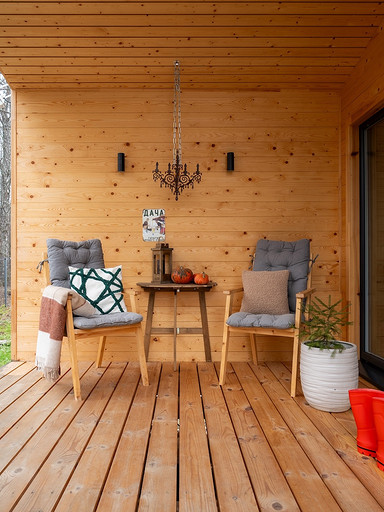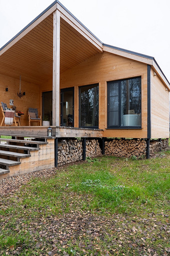 Реализованный проект одноэтажного загородного дома площадью 31,6 м2 без учета террасы