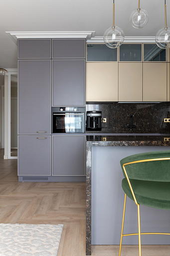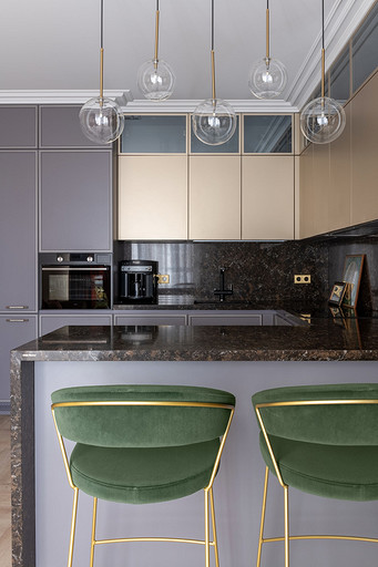 - Мебель: кухня Giulia Novars, барные стулья Calligaris, кофейный столик «Студия мебели 12.1»