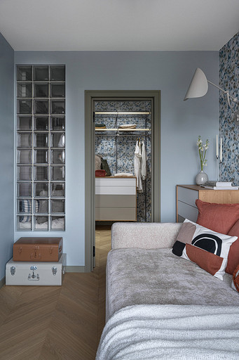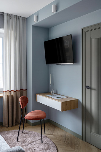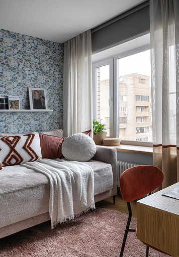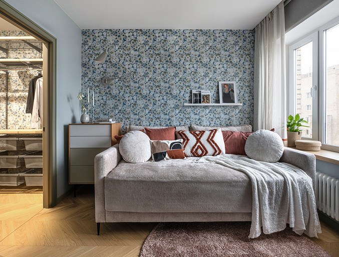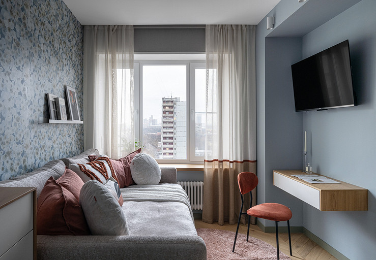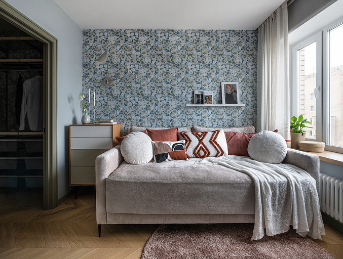 - Мебель: сделана на заказ в «Изделие» (Мануфактура Интерьерных Решений), кушетка в гостиной и кровать-диван в спальне жены сделаны на заказ в Jamni, обеденный стол и журнальный столик La Redoute, комоды и подвесные тумбы SK Design, обеденные стулья Anni Haus, стул у рабочего стола в спальне мужа Chair Сollections
