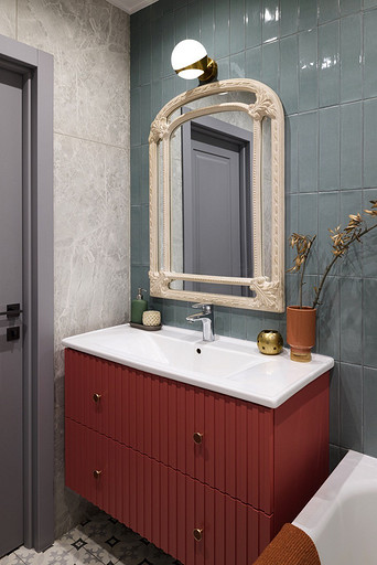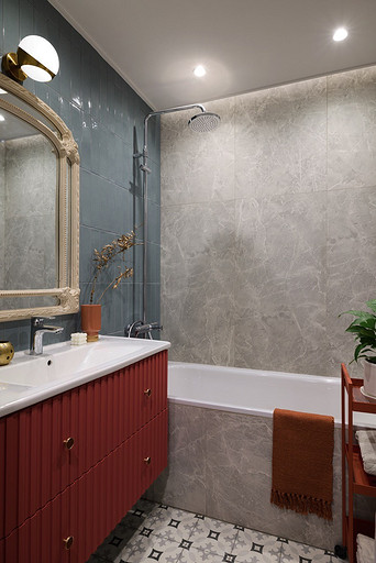 - Сантехника: ванна Bette, душевая стойка и смеситель на раковине Kludi, раковина AM.PM