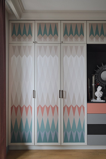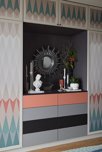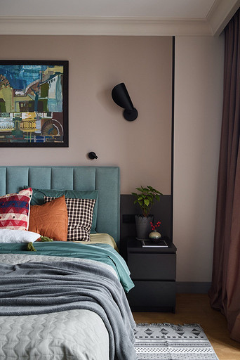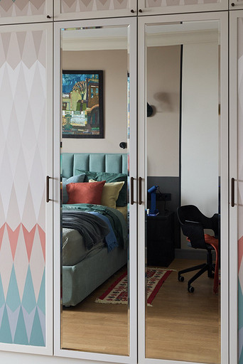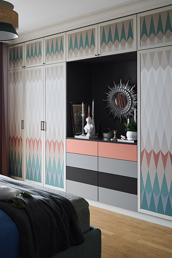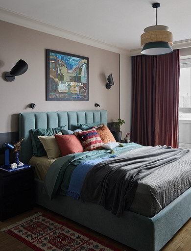 - Мебель: кровать KeyComf, прикроватные тумбы, рабочий стол с тумбами и стул ИКЕА, встроенный шкаф сделан на заказ