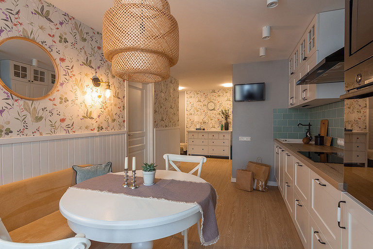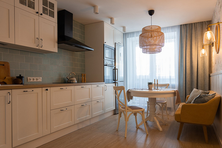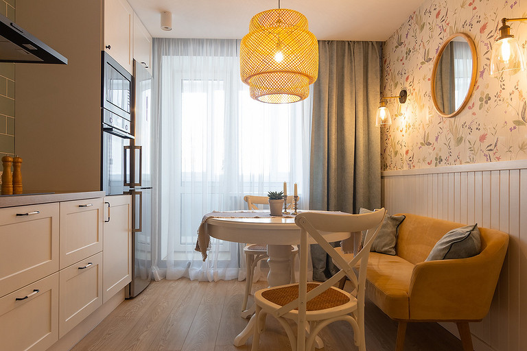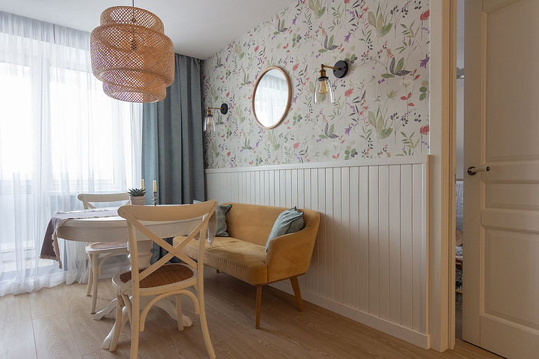 - Мебель: обеденный стол ИКЕА, стулья Secret de Maison, диванчик сделан на заказ