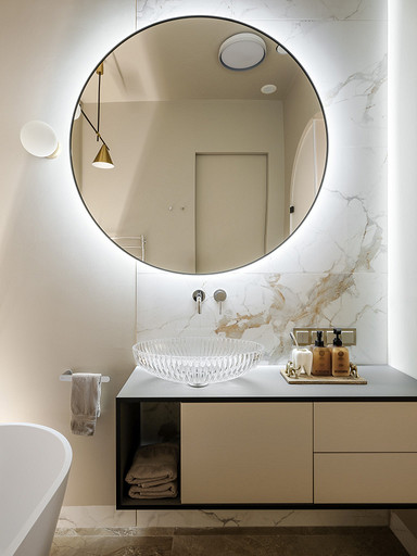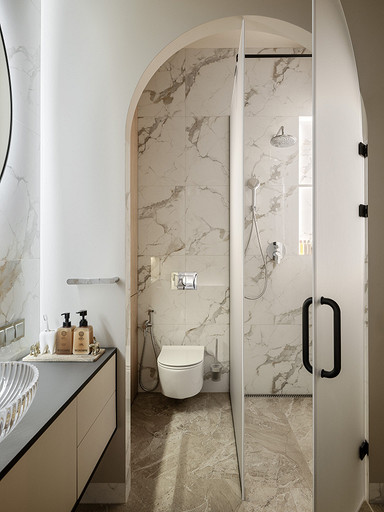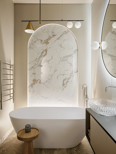 Светлые бежевые оттенки, арочные формы, много фактур — этот интерьер в одной из башен Москва-Сити привлекает внимание спокойствием на фоне активного мегаполиса. Читать далее...