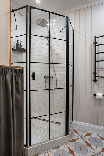 - Пол: инженерная доска Legend, керамогранит Dual Gres
