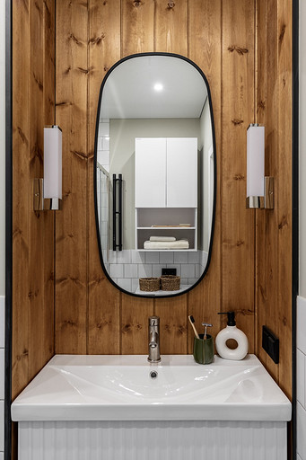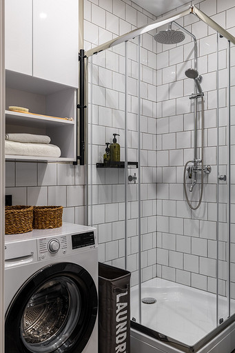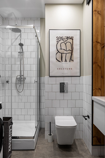 - Сантехника: унитаз BelBagno, душевая стойка Stworki, стеклянная душевая перегородка Divo, смеситель PMC