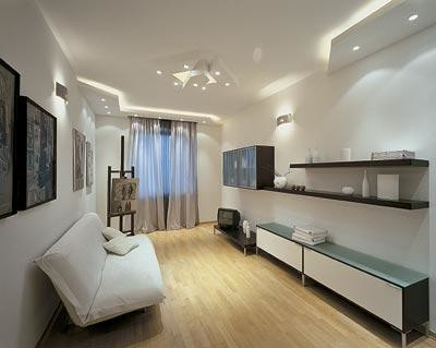 - Потолок: стекло в металлических рамах Тиги Knauf, стекло в металлических рамах Tikkurila