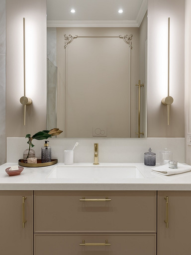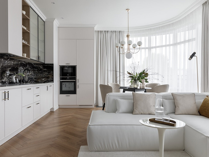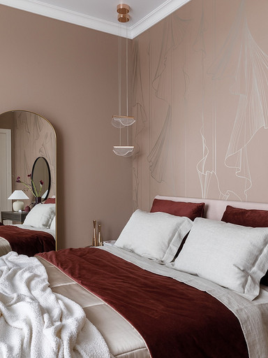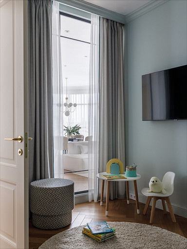 - Мебель: мягкая мебель и шкафы сделаны на заказ по проекту дизайнера, стул и пуф Normann Copenhagen, кровать divan.ru, барные стулья Deep House