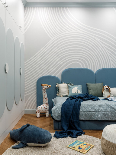 - Стены: краска Mons, обои в спальне Frecq, обои в детских Koza Decor