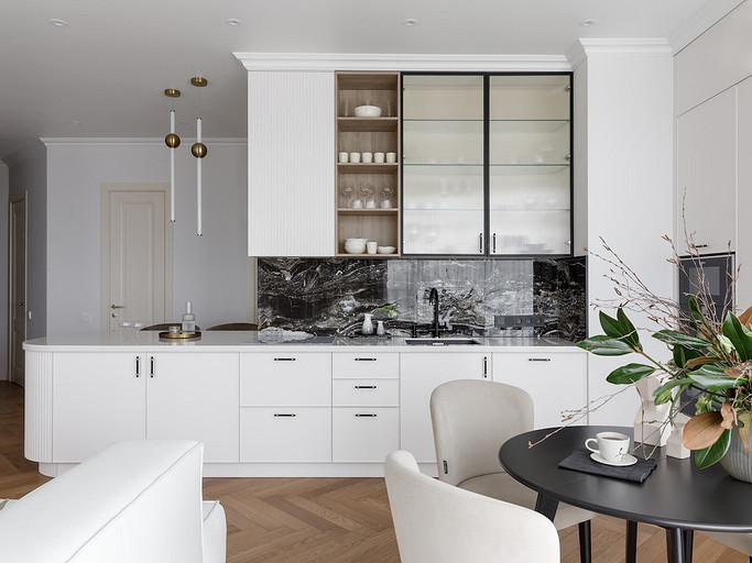 Дизайнер разработала несколько вариантов планировки и консультировалась с приглашенными заказчицей специалистами по фэншуй, чтобы новая планировка соответствовала этой философии. Читать далее...