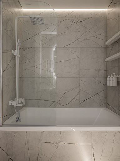 - Стены и пол: керамогранит Idalgo