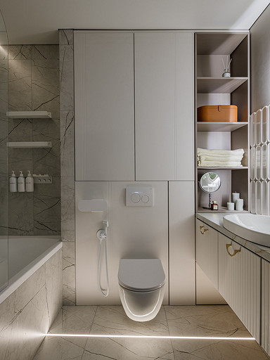 - Освещение: люстра Denkirs, точечные светильники Maytoni, теневые профили E-Craab, светодиодная лента Arlight, умные светильники Kojima