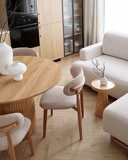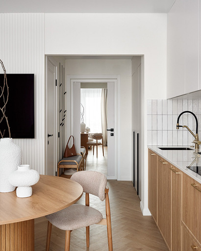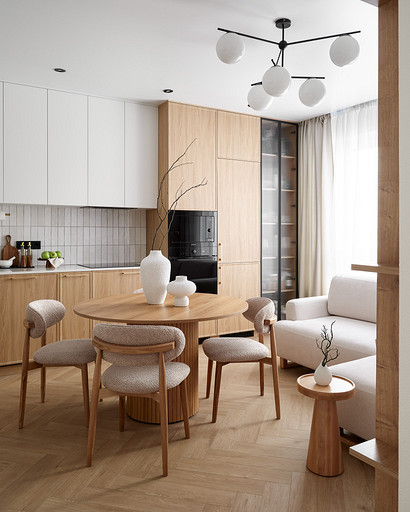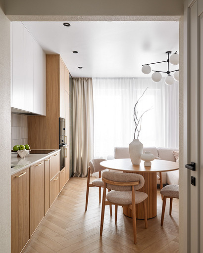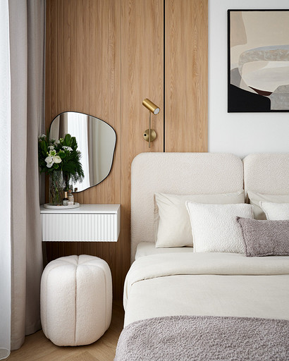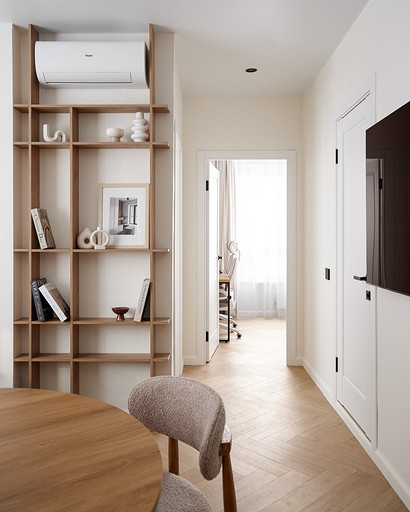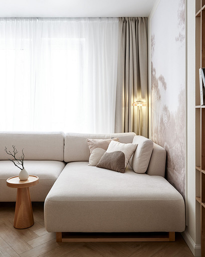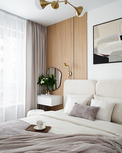 Квартира с отделкой от застройщика комплектовалась для собственного проживания заказика. Стиль Джапанди.