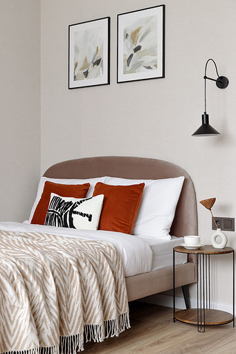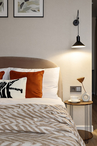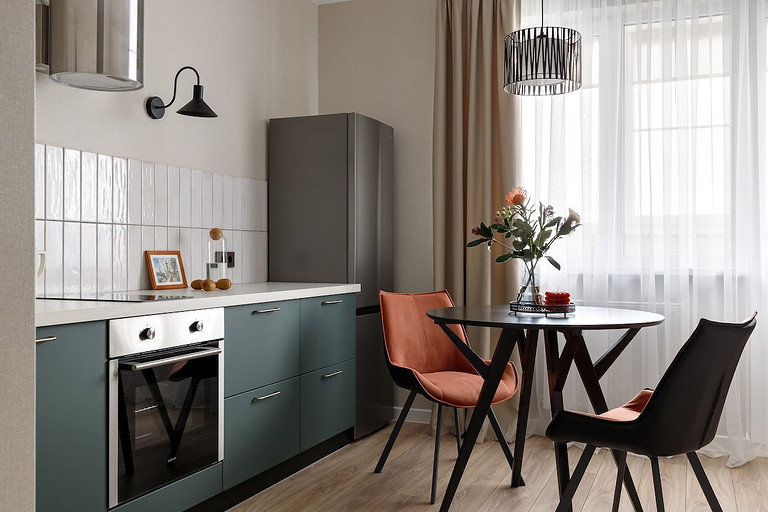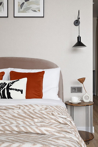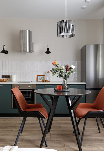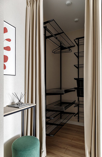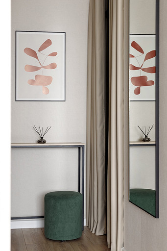 - Мебель: кровать Moon, кухня — мебельная компания «ДСВ», гардеробная «Титан-GS», стол ТПК «Аструм», комод «Первый мебельный», шкаф Hoff, пуф, стулья и консоль — маркетплейсы