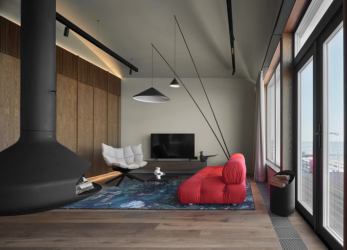 - Мебель: B&B Italia, Vibia, Vitra, Moooi, Focus, кухня и гардеробная сделаны на заказ