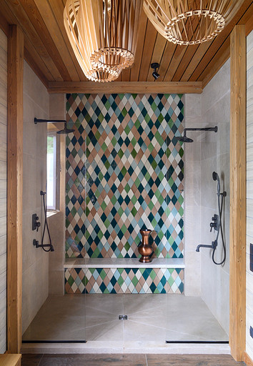 - Потолок: вагонка из лиственницы