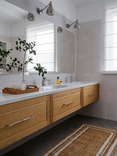 - Пол: паркетная доска Alpine Floor, керамогранит Estima Ceramica
