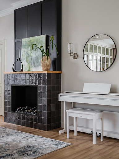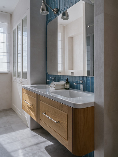 - Стены: краска Dulux, обои Harlequin, мозаика Vidrepur, керамическая плитка Equipe, Kerama Marazzi