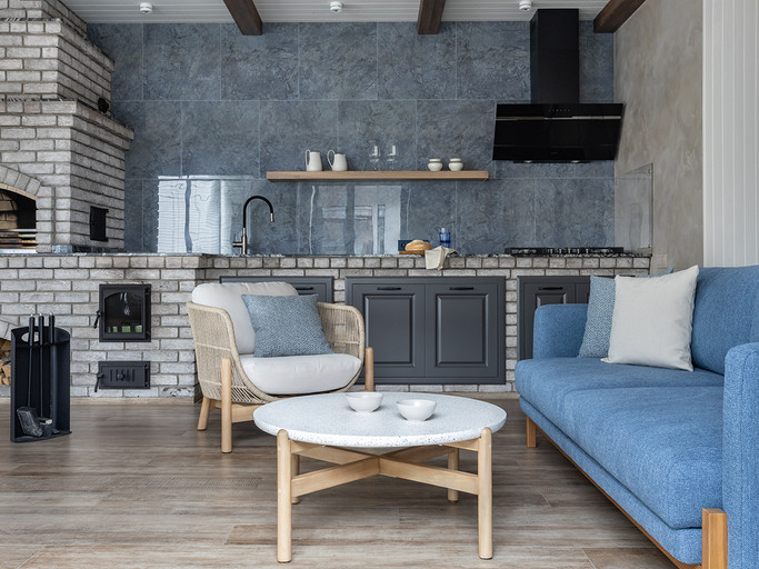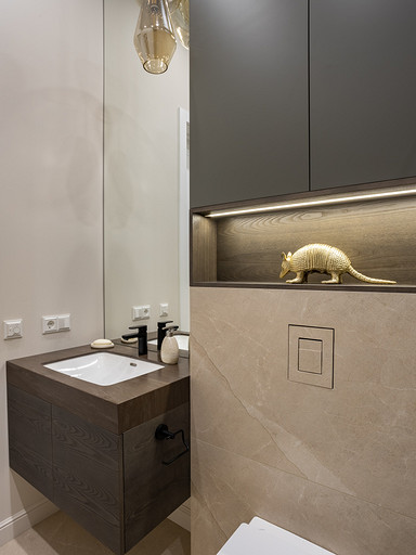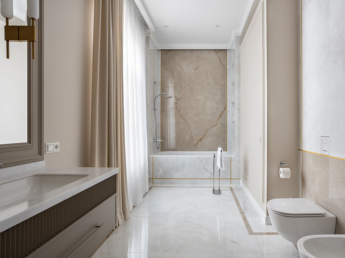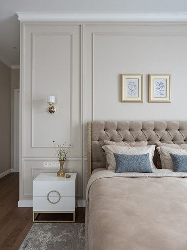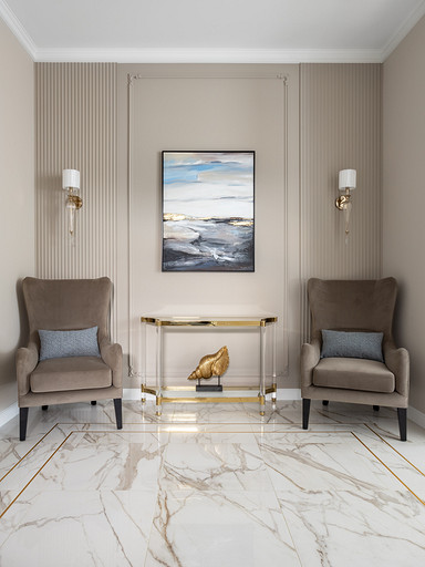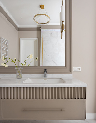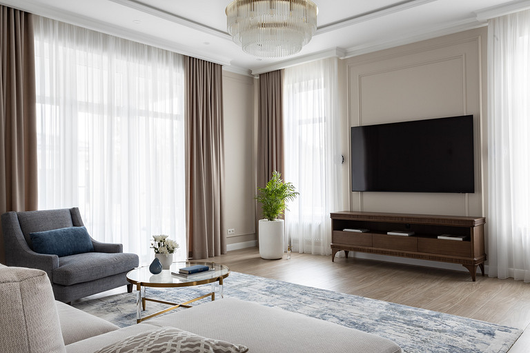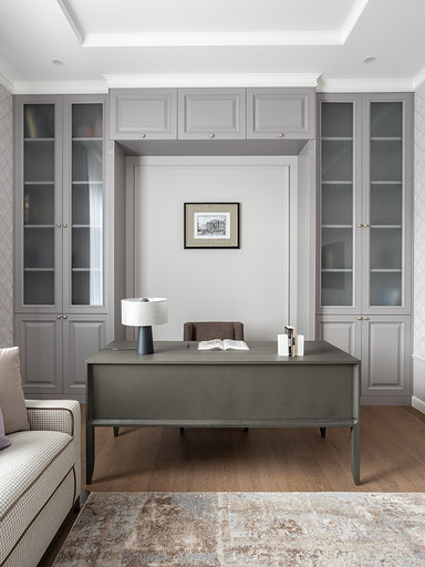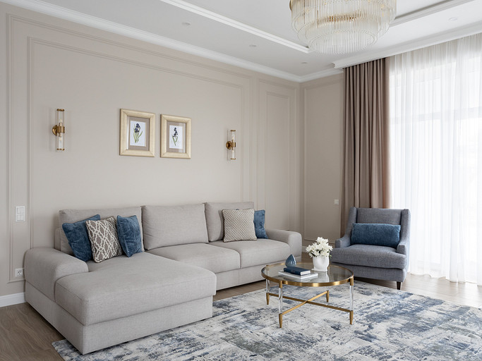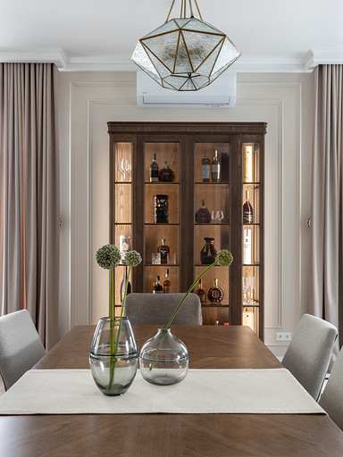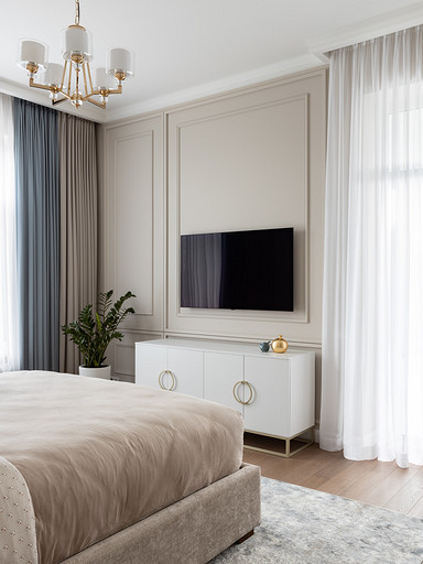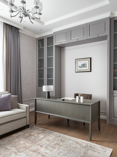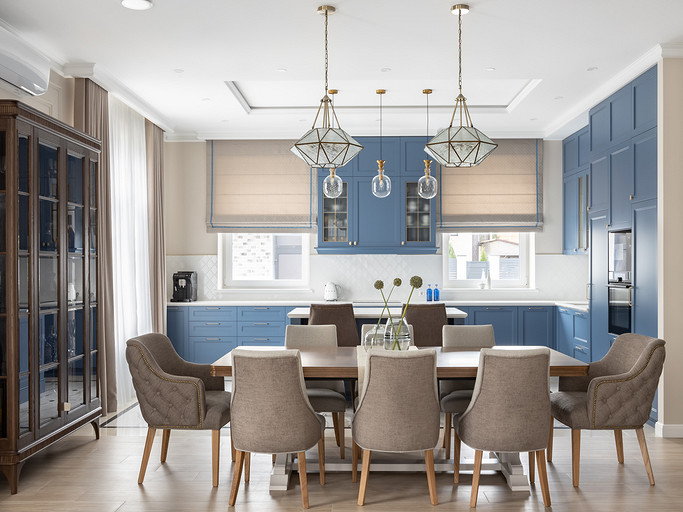 Американская классика — самый лучший вариант для семейного дома, это стиль «на века», тенденции в дизайне могут меняться, но классика всегда будет актуальна. Такой вариант подходит семейным парам, которые решили создать уютное место для себя и своих близких. Как раз такой дом мы и реализовали в Челябинске. Интерьер выполнен в сдержанных тонах с акцентными темными элементами в мебели. Основные цвета: приглушенный голубой, серый и бежевый. Дом одноэтажный, но от этого не теряет своей функциональности. Здесь разместилось все: прихожая, котельная, кухня-гостиная, кабинет, сан. узел гостевой, постирочная и мастер-блок со своим сан. узлом, гардеробной и спальней. Большая кухня с островом посередине располагает к домашней атмосфере и приготовлению совместных ужинов. А за вместительным обеденным столом может разместиться до 8 гостей. В зоне гостиной угловой диван и кресло для посиделок у телевизора воскресным вечером. В кабинете также есть место для гостей и партнеров, чтобы обсудить дела за чашкой кофе, и, конечно же, во главе комнаты размещен удобный письменный стол. В мастер-блоке есть все необходимое для качественного отдыха: мягкая кровать, кушетка для чтения и столик для чая или книги. Мастер-ванная встречает хозяев большим зеркалом и тумбой на 2 раковины, чтобы у каждого из супругов было свое пространство и место хранения. Особенностью проекта является то, что практически вся мебель готовая и куплена в салонах, и только выборочные элементы сделаны на заказ. Также в проекте присутствует большое количество продукции Orac. Здесь и километры молдингов на стенах, и скрытое освещение на потолке, и стеновые панели в холле — все это создает атмосферу настоящего английского поместья где-то за пределами Лондона.