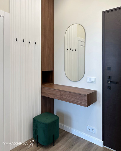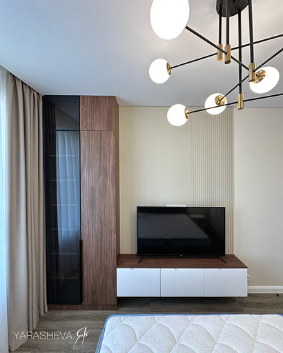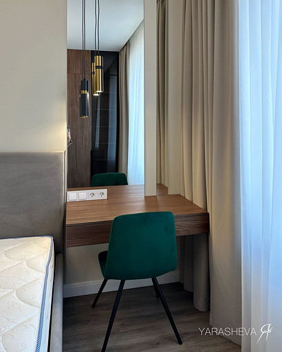 Реализованный дизайн интерьера квартиры в ЖК Freedom (Фридом) 35 м кв. от Yarasheva Studio Design. (Дизайнер интерьера — архитектор Яна Ярашева)