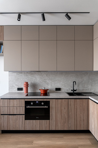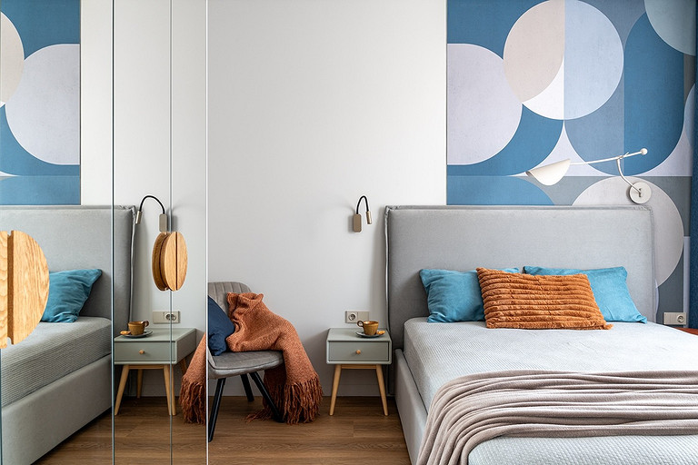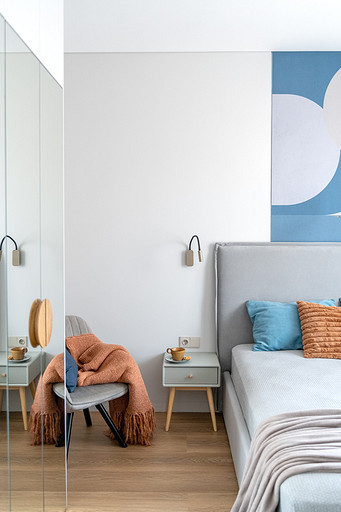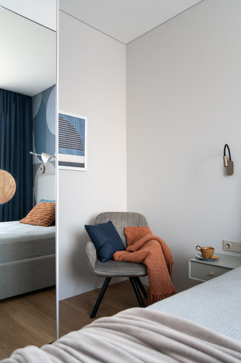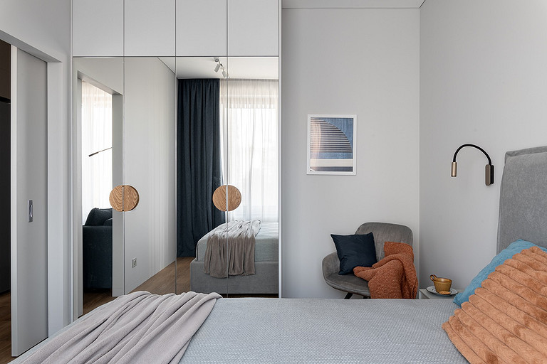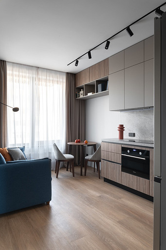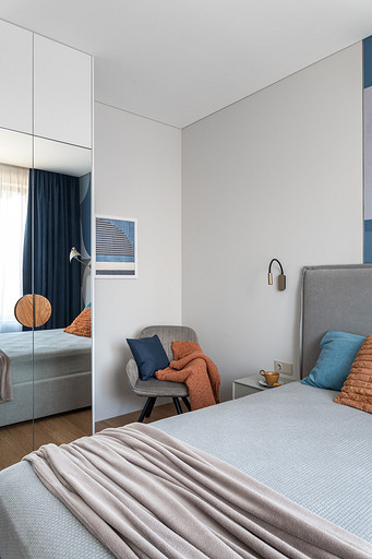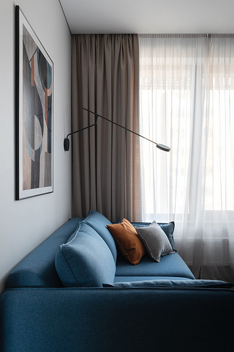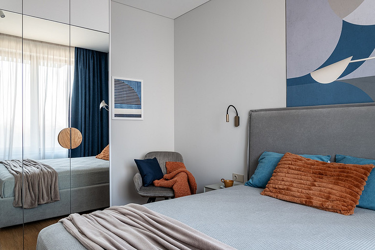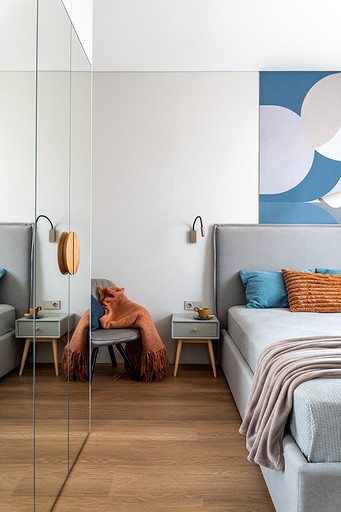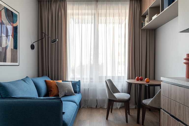 - Мебель: кровать Lavsit, матрас «Аскона», диван SK Design, столовая группа Lagom, кухня «Стильные кухни»