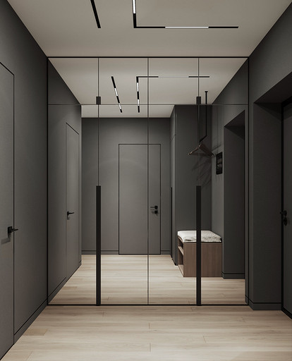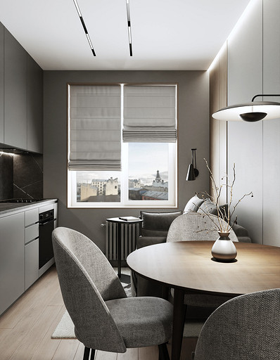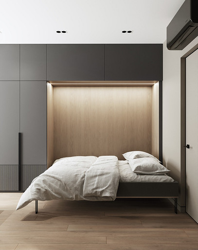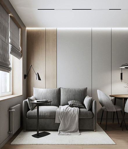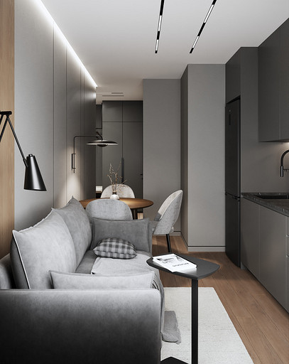 Дизайн 1-комнатной квартиры в ЖК «СемьА» в Санкт-Петербурге: стильный минимализм для молодой пары. Подробнее на нашем сайте: https://design-in.ru